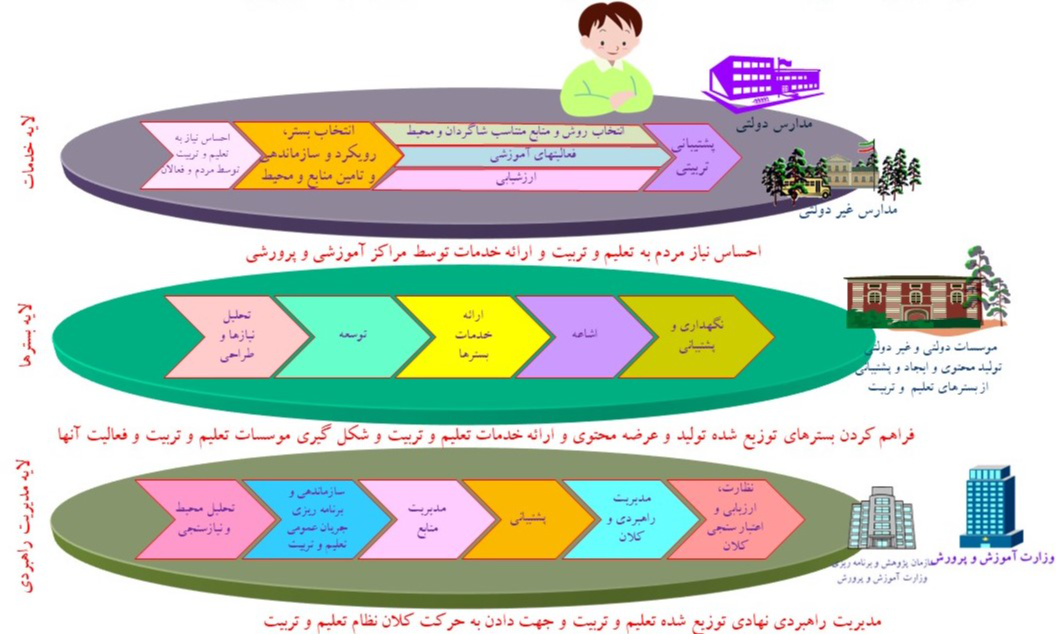 به عبارت دیگر، زنجیره ارزش نظام تربیت، از یک زنجیره ارزش خطی در نظام صنعتی، به یک زنجیره ارزش چند لایه در نظام نوین تبدیل شده، که مشارکت جامعه در این زنجیره ارزش، در عین حفظ حاکمیت، به خوبی قابل مدیریت شدن و تحقق است.