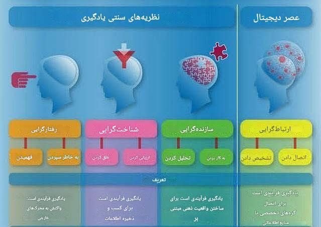 اما مسئله مهم در معماری مطلوب و آینده آموزش آن است که رویکردهای کلان مختلف تعلیم و تربیت، با محوریت رویکرد یا دیدگاه سازنده‌گرا[14] و ارتباط‌گرا[15]، ضمن پوشش و استفاده از دیدگاههای شناختی[16] و رفتارگرا[17] در جایگاه مناسب آنها، در پهنه تعلیم و تربیت رقم می‌خورد؛ و بر خلاف رویکرد موجود در رویکرد رفتارگرا منحصر و محدود نمی‌شود.
