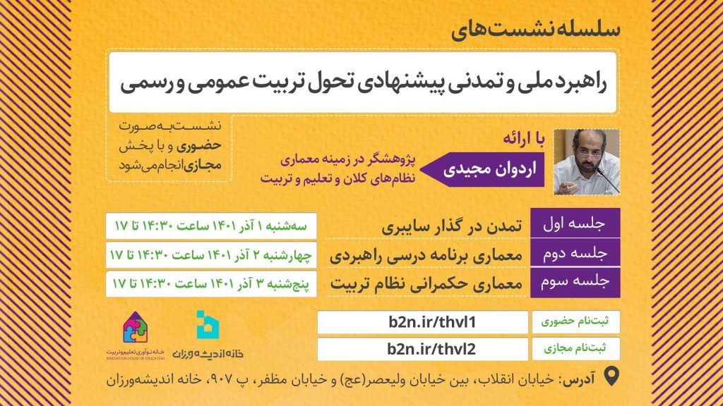 🔸 جلسه ۳: معماری حکمرانی نظام تربیت، چهارشنبه 3 آذر 1401