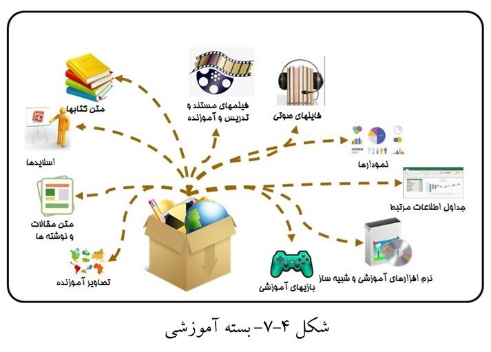 یک بسته آموزشی میتواند شامل بخشهایی باشد که باید مطالعه شود، فیلمهایی که باید دیده شوند، تمرینها و آزمونهایی که باید انجام شوند، و کارهایی که باید انجام شوند (مثل تمرین ورزشی خاص، یا ساختن یک وسیله خاص) با توجه به رواج فراگیر و روزافزون بسترهای الکترونیکی اعم از رایانه، تبلت یا گوشیهای هوشمند، بستههای آموزشی بیشتر به صورت الکترونیکی آن تصور میشوند. معمولا شکل الکترونیکی آن، به صورت کاغذی هم در مورد متون و اسلایدها، قابل تبدیل است. اما امروز وقتی از کلاس معکوس صحبت میشود، معمولا فکرها به سمت فیلم ضبط شده معلم میرود. آیا محتوی فقط فیلم است؟ آنهم فیلم توضیحات ضبط شده خود معلم یا معلم دیگر؟ قطعا خیر! در شکل الکترونیکی آن، یک بسته میتواند شامل عناصر مختلفی باشد. از جمله فیلم مستند، فیلم داستانی یا سینمایی (مثلا در حوزه تاریخ)، فیلم توضیحات معلم یا یک کلاس درس (که معمول است)، متن توضیحات، مقاله، بخشهایی از کتاب، مجله، اسلاید، تصویر، بازی آموزشی، نرم افزار و ابزار (نظیر نرم افزارهای شبیه ساز، مثلا شبیه ساز آزمایش فیزیک)، یک ابزار بازی (مثلا یک پازل یا چیدنی یا قطعههای آهنربایی)، یک ابزار آموزشی (مثلا یک کیت مدار الکترونیکی) و نظایر آن. محتواهایی که شاگردان از طریق آن میتوانند خودیادگیری داشته باشند، بسیار زیاد است، و فیلم کلاس درس فقط یکی از آنها است.