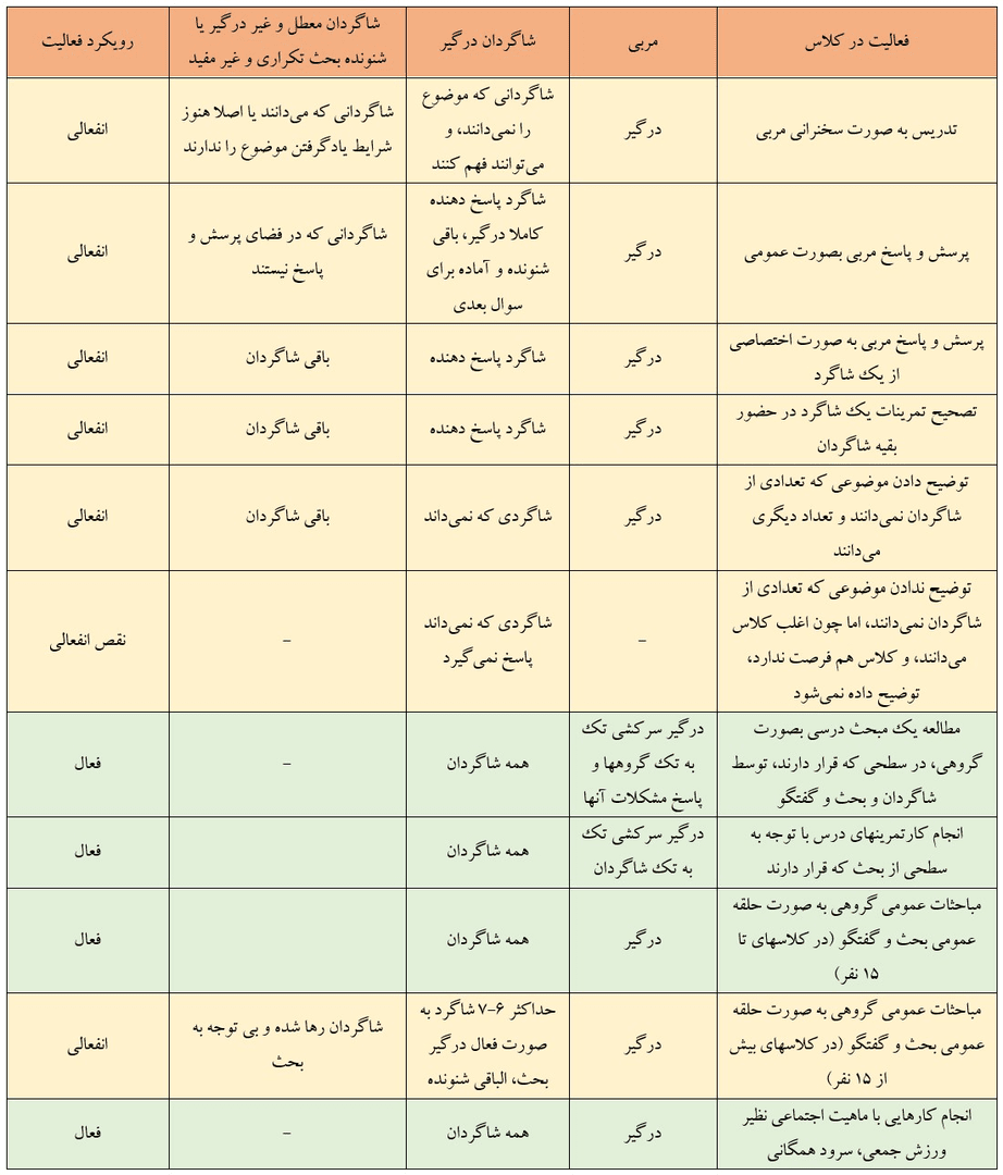 مدیریت فعال فعالیتهای درسی مربی و شاگردان