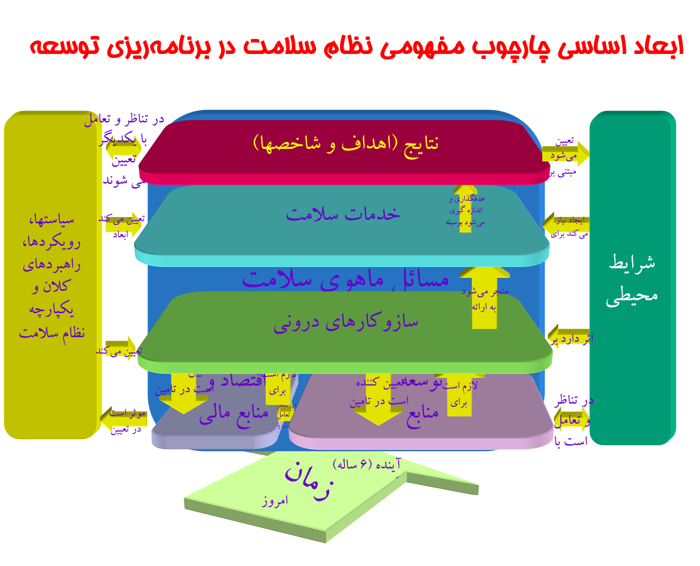 💠 در خلال تدوین برنامه پنجم نظام سلامت در سال 1387، برای تلفیق مطالعات و نیز طراحی ها و برنامه ریزی های انجام شده نظام سلامت، به صورت موازی با فعالیت تلفیق دیگری که در معاونت هماهنگی وزارت بهداشت در آن سال در خلال انجام بود، به سفارش وزیر محترم وقت، فرایندی توسط ارائه کننده این کارگاه در نظام سلامت طی شد، که حتی الامکان بتواند تلفیق را بر اساس سطحی از یک طراحی معماری نظام کلان سلامت انجام دهد. این طراحی انجام و سند برنامه پیشنهادی ارائه شد. هر چند که به دلیل روال رسمی موجود، برنامه پیشنهادی در مراحل بعدی در سطح دولت و مجلس، دچار تغییرات اساسی شد، و آنچه تصویب و اجرا شد، تفاوتهای اساسی را با معماری و سند مذکور داشت. اما طراحی معماری مذکور، به نحوی انجام شده بود، که هم اکنون نیز تقریبا به روز و قابل استفاده است. ضمن آنکه رویکرد و چارچوب و روش شناسی استفاده شده، برای معماران نظامهای کلان دیگر نیز قابل استفاده است.