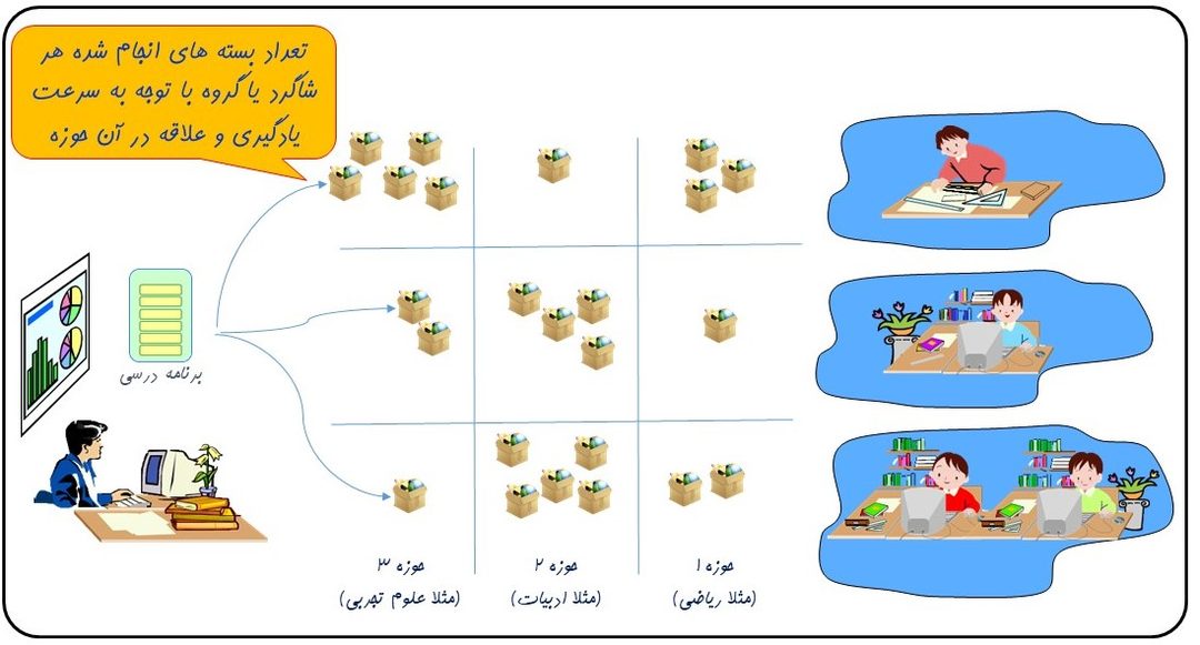 پس لازم است کلاس درس را از حالت سخنرانی خارج کنیم. باید فضای کلاس را به گونهای شکل دهیم که هر شاگرد، به بستههای آموزشی که در اختیار او قرار دارد مراجعه کرده، بستهها را دریافت کند، و آنها را مطالعه و انجام دهد. شاگردی میتواند کندتر، شاگردی میتواند سریعتر باشد.